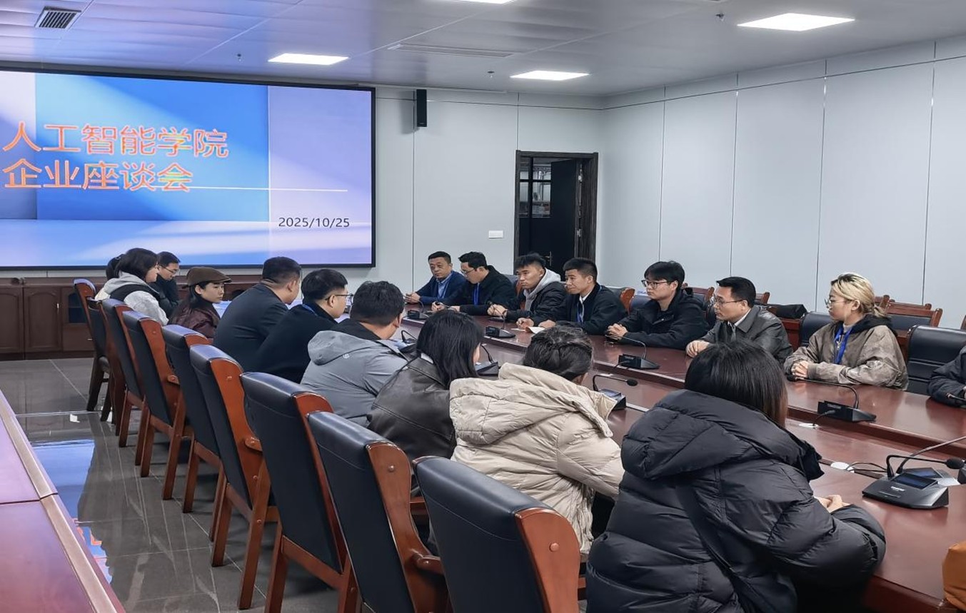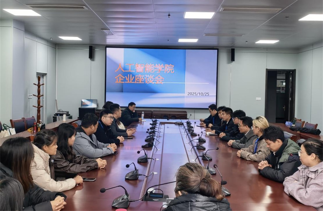 座谈会上,来自多家科技企业的代表与学院师生共聚交流,围绕人工智能领域的人才需求趋势与校企合作路径等议题展开深入探讨。