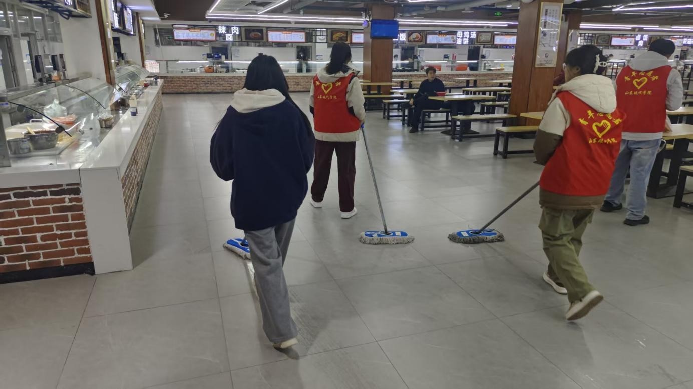 从食材处理到餐厅保洁,整个帮厨过程中,同学们分工协作、互相配合,主动承担较重的洗菜工作,整理散落的工具,红色志愿马甲的身影穿梭在食堂各个区域,每个志愿者都尽力做好自己的工作。