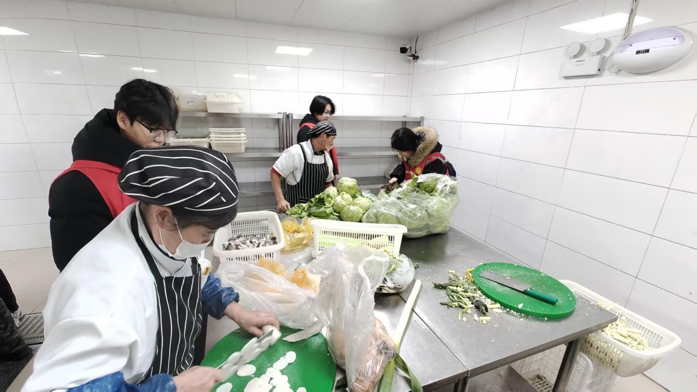 活动伊始,志愿者们全体集合,在食堂工作人员的指导下,迅速投入工作。