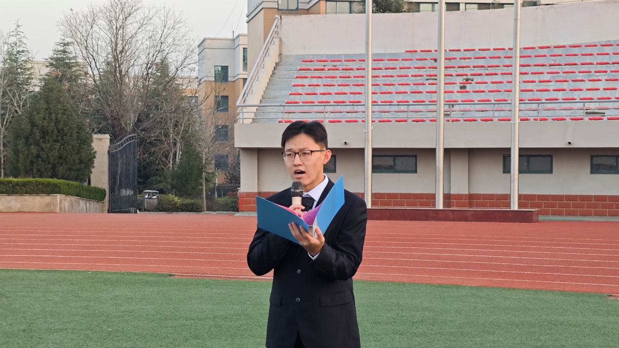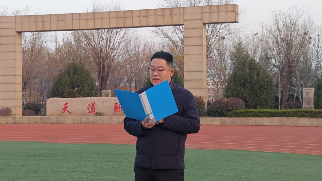 学生代表牛越锋在国旗下发言,从感恩祖国庇护、父母养育、师长教诲、同窗陪伴及学校培育等多个角度分享体会,呼吁同学们将感恩之情转化为奋发进取的动力,以专业学习、自立自强和笃行实干践行青春使命,用实际行动回馈各方关爱与期望。