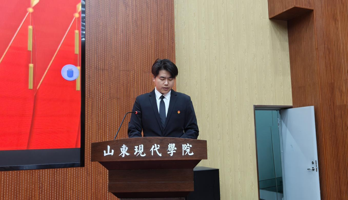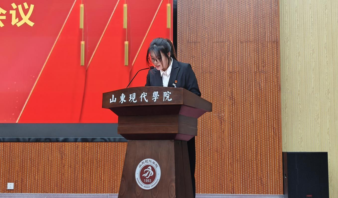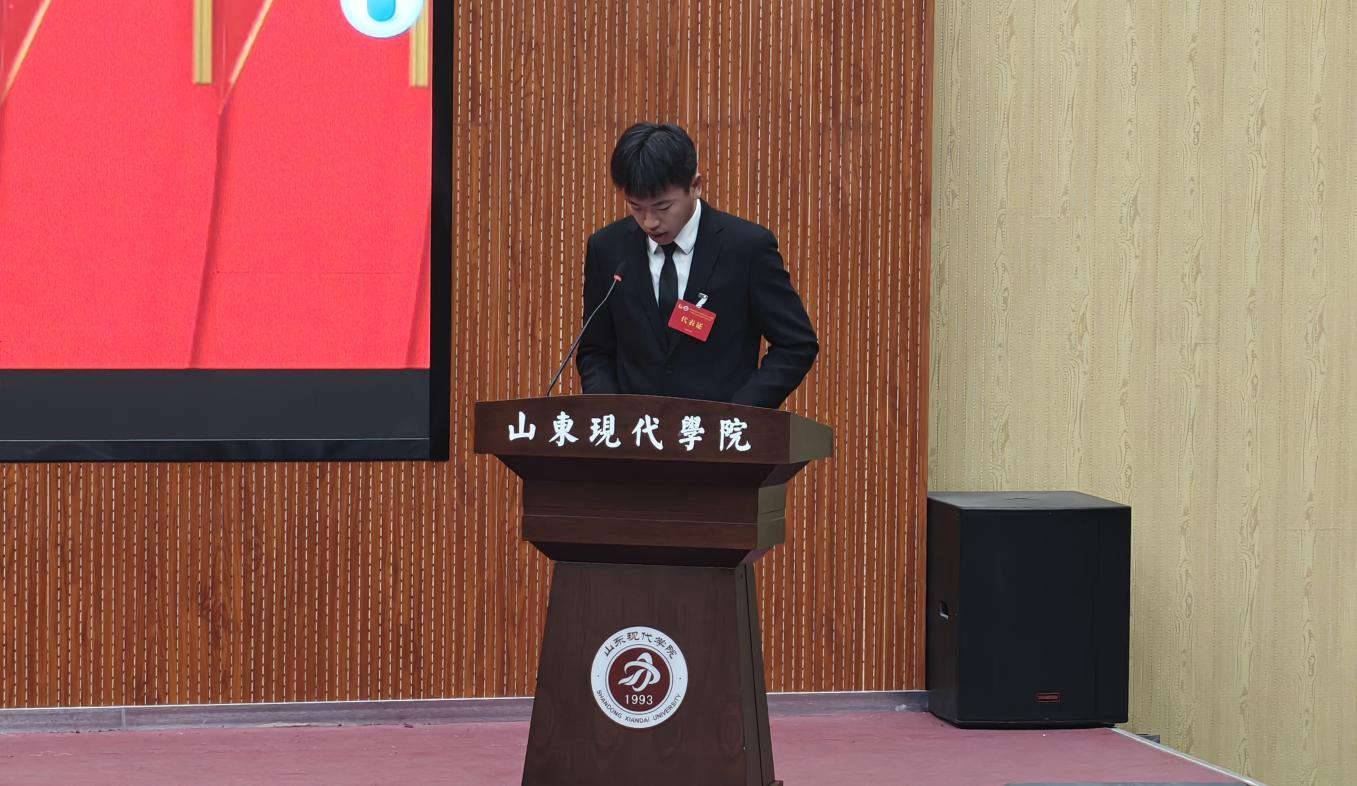 会议期间,代胜旗同学作《山东现代学院人工智能学院第十届学生会工作报告》,他首先回顾了过去一年学生会在学风建设、文体活动、志愿服务等方面的具体工作,客观分析了存在的不足,并对下一届学生会的工作方向提出了建设性建议。