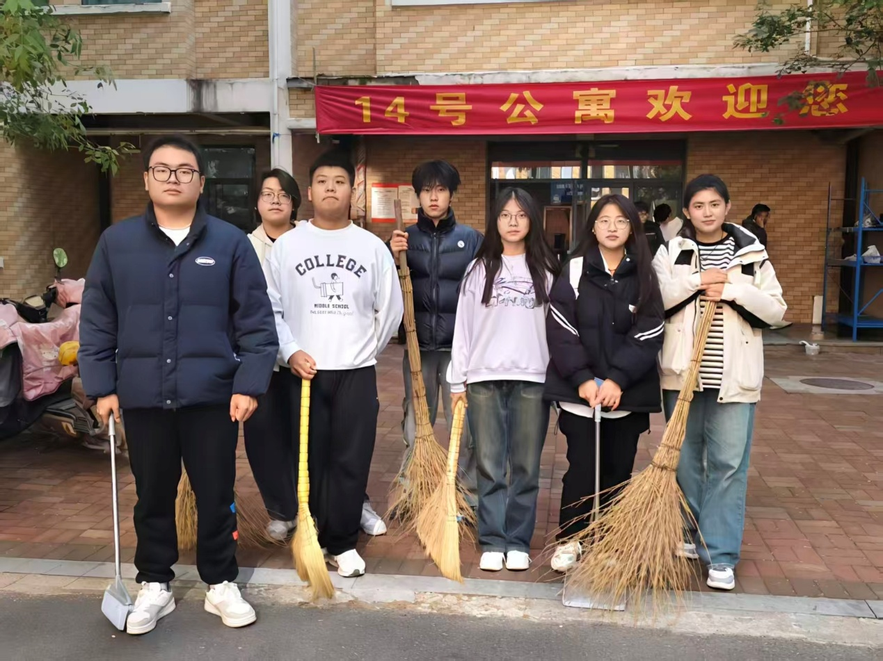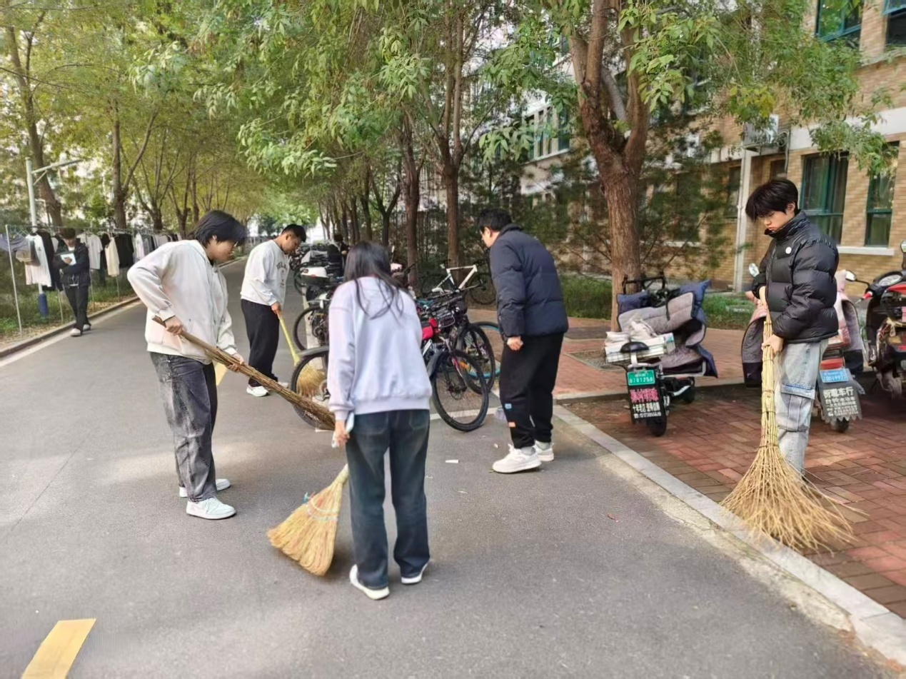 活动现场,志愿者们分工明确、干劲十足:有的手持扫帚清扫道路落叶与杂物,有的整理乱停乱放的车辆,还有的配合清运垃圾,将公寓周边的卫生死角逐一清理。从道路到车棚,从公共区域到角落缝隙,志愿者们用细致的劳动让公寓周边环境焕然一新。